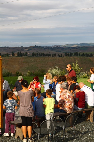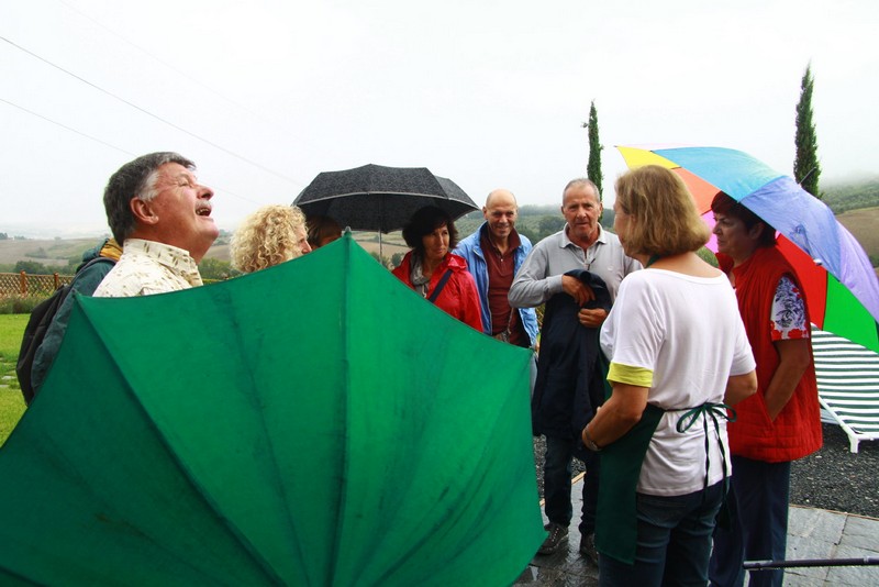Questa volta siamo stati messi davvero a dura prova dalle previsioni del tempo: l’aspettativa di acquazzoni e temporali ha indotto molti partecipanti a disdire e, non potendo rimandare l’evento eravamo indecisi se annullare o meno. Ma il nostro ottimismo ha avuto di nuovo il sopravvento, anche perché ci tenevamo a presentare al pubblico il Podere Scaforno nella sua veste definitiva, con i lavori di ristrutturazione finiti e da questa primavera “funzionante” come offerta turistica di qualità.