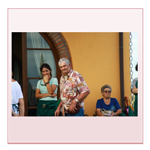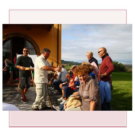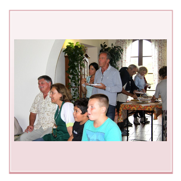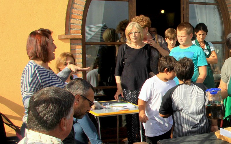 Avevamo preparato il ricevimento nel grande salone di uno degli appartamenti di Scaforno, ma al momento giusto la pioggia è cessata ed abbiamo potuto iniziare il programma nel giardino, con lo splendido panorama della nostra valle come palcoscenico.