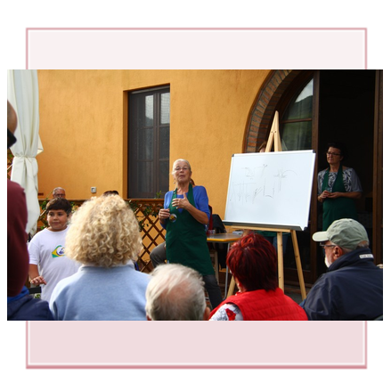 Dopo la tisana di benvenuto a base di verbena odorosa, melissa, menta e radice di zenzero (e naturalmente una polverina miracolosa, assolutamente segreta) la nostra presidentessa Beatrice Pizzi introduce l’evento “Amor DiVino 2015” spiegando al pubblico lo scopo e le attività del Comitato e che dopo il recente adeguamento dello statuto ci