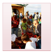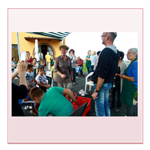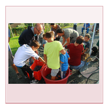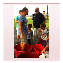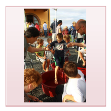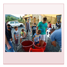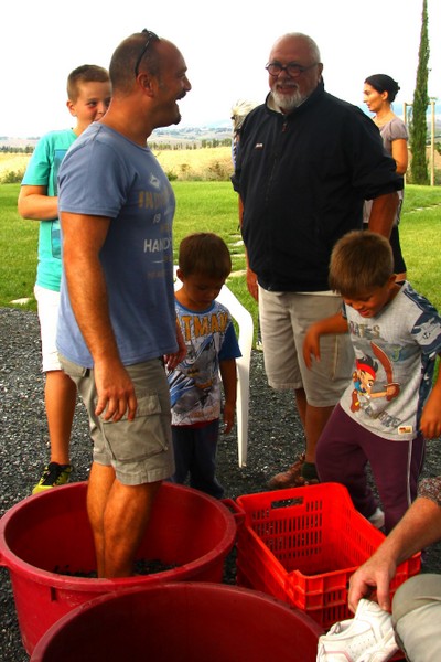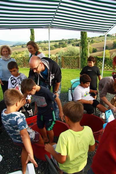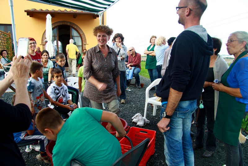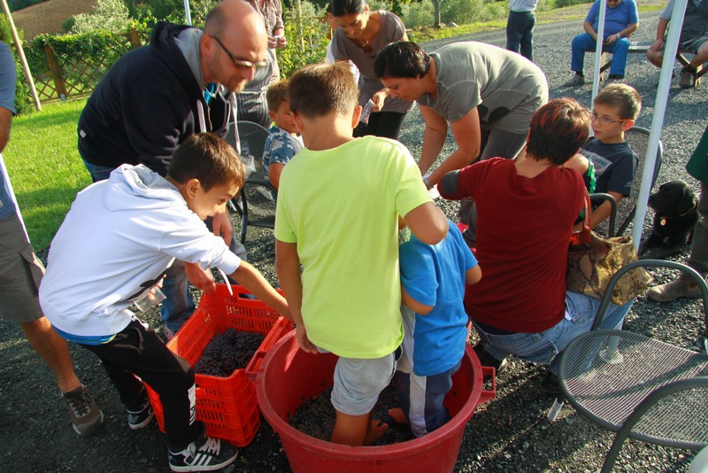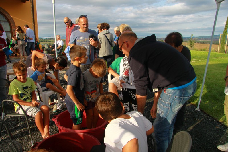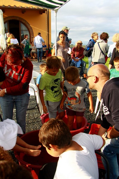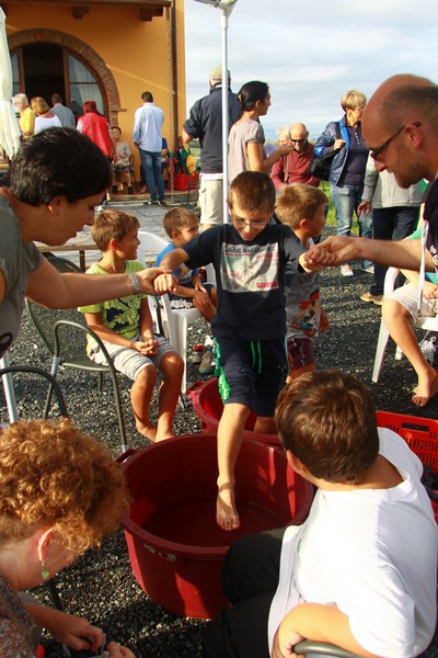Poi arriva il momento per i bambini: è stato preparato il tino per la pigiatura dell’uva e molti piedini nudi si susseguono con entusiasmo in questa attività insolita e divertente….. alla fine anche qualche piede adulto non può resistere alla tentazione.