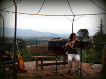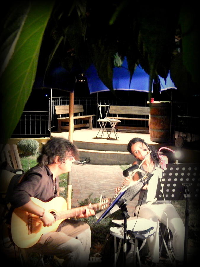 adatto ad ogni gusto, la chitarra e il flauto di Marco Del Giudice e Sara Saccomani accompagnano la cena allietando i partecipanti intenti a degustare i piatti squisiti e genuini; verdure fresche degli orti della valle, superbe le zucchine e le melanzane elaborate e servite in apertura, e poi le paste di grani