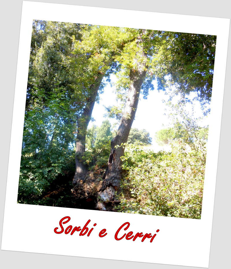 Sulla via del ritorno, in prossimità dell’innesto con la provinciale, sono state ammirate grandi e splendide piante di cerro (Quercus cerris), facilmente riconoscibili dalle altre specie di querce per il caratteristico cappuccio ricoperto di una sorta di grossolana peluria riccioluta che hanno le ghiande, ed un sorbo con ancora qualcuno dei suoi frutti, con i quali si fanno ottime marmellate ma da consumare dopo una lunga stagionatura a causa della loro astringenza che si perde solo con una surmaturazione: da qui il tipico detto toscano "con il tempo e con la paglia si maturano le sorbe e la canaglia".