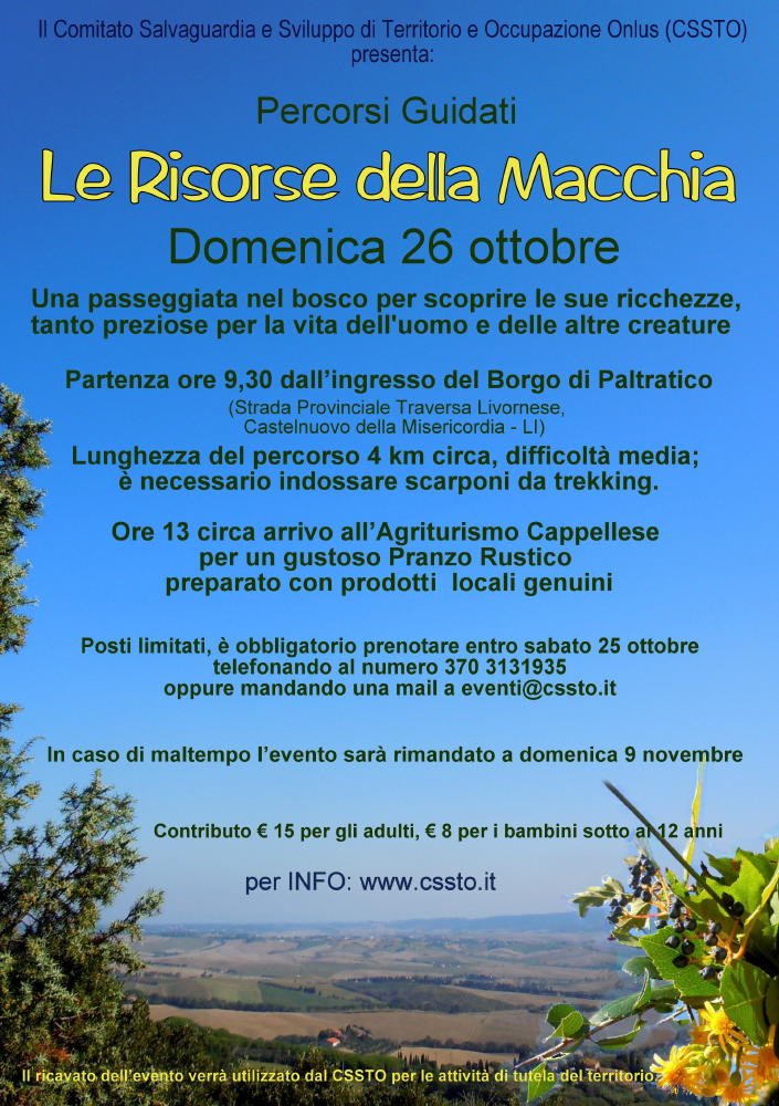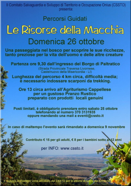 In una splendida giornata autunnale più di settanta persone di tutte le età si sono radunate al Borgo di Paltratico per partecipare a questa passeggiata alla scoperta delle risorse naturali che ci offre la nostra meravigliosa macchia.