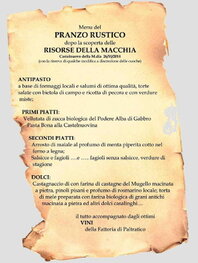 All’Agriturismo Cappellese è stato infine offerto un ottimo Pranzo Rustico, preparato con i prodotti genuini della nostra zona ed accompagnato dai buonissimi vini della Fattoria di Paltratico.