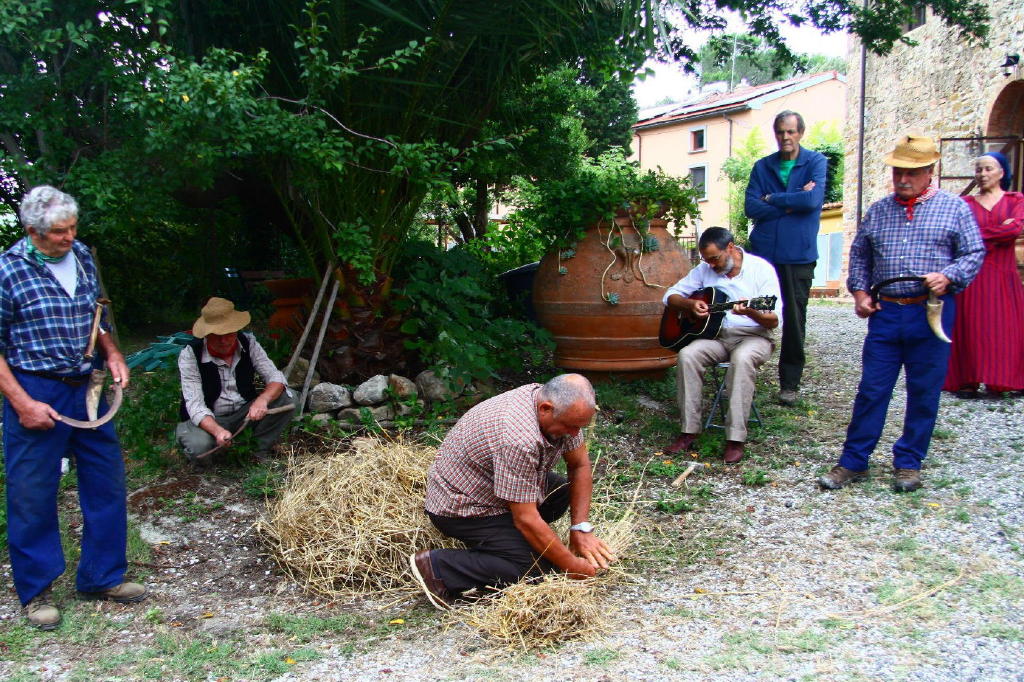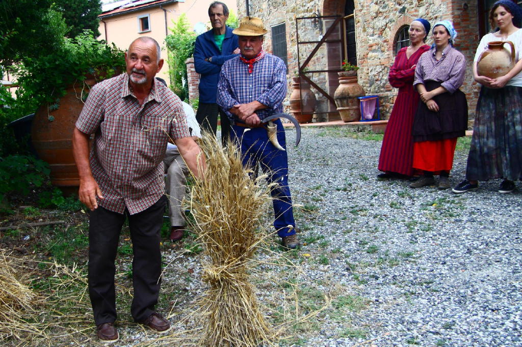 Poi ha preso la parola Beppe Landi spiegando che fino a pochi decenni fa, prima dell'avvento delle macchine agricole, la mietitura era un lavoro estremamente faticoso che richiedeva la collaborazione non solo di tutta la famiglia ma anche dei contadini confinanti. Per questo era anche un'occasione di festa, un importante avvenimento nella vita sociale. La mietitura era ed è la prima delle tre raccolte principali che si fanno durante l'anno: grano, uva ed olive con i quali si fanno pane, pasta, vino ed olio; generi alimentari di prima necessità che nella nostra vita quotidiana sono state da sempre di estrema importanza.