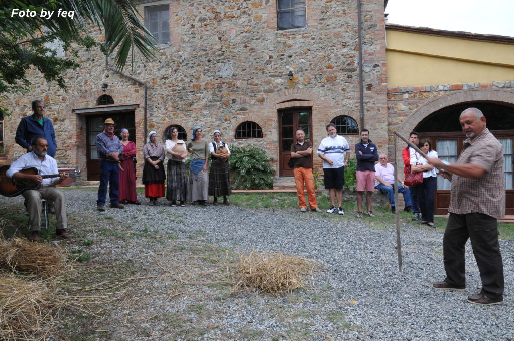 La manifestazione ha avuto inizio con l'entrata in scena di un gruppo di figuranti contadini, vestiti secondo la tradizione toscana e muniti dei tipici attrezzi: falci per mietere il grano, incudine e martello per battere la lama, il corno agganciato alla cintola contenente la pietra per affilare.