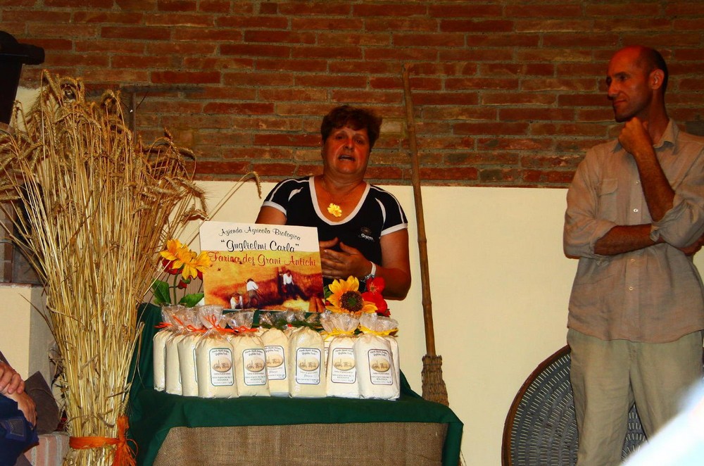 All'interno di Villa Nardi, Michele Menicagli e Carla Guglielmi hanno tenuto una piccola conferenza sulla diversità dei grani e sui pregi di quelli antichi, recentemente ricoltivati, ed è stato anche possibile acquistare alcuni tipi di farina ottenute con tali grani.