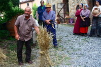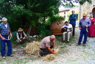 Infine ha dato una breve dimostrazione della battitura (tribbiatura) del grano sull'aia con l'utilizzo del correggiato ed ha raccontato molte cose interessanti sulla vita di un tempo, rispondendo anche ad alcune domande fatte dal pubblico.