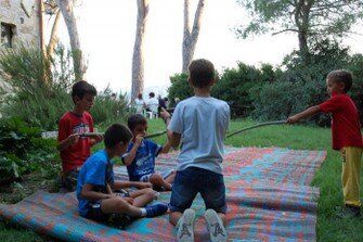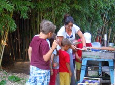 Nel frattempo i bambini si sono divertiti a costruire i cannoni spara-frutta sotto