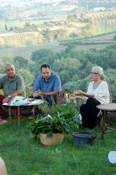 Su uno stupendo palcoscenico naturale in cui pini spettacolari incorniciano il meraviglioso panorama della Valle del Botro Riardo, Beppe Landi, Tatiana Paoli e Beppe Carbone si sono alternati a parlarci di tanti argomenti interessanti e curiosi: le proprietà e il potere delle piante, la magia, la luna, le credenze, i proverbi, i fiori di Bach e tant’altro