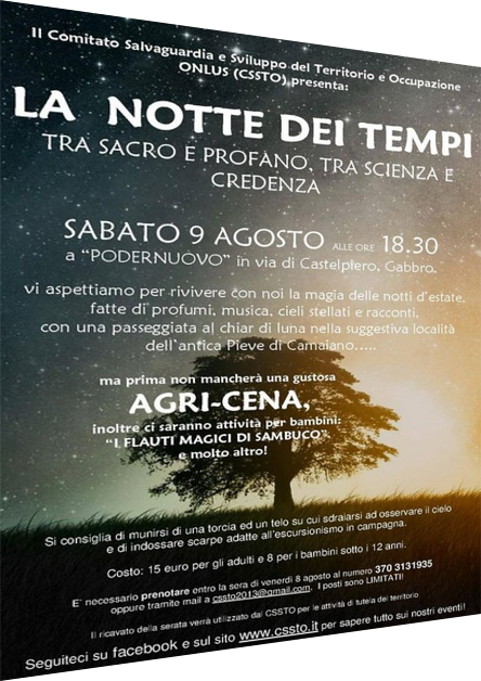 Sabato 9 Agosto 2014 il CSSTO ha organizzato un evento molto bello e particolare che si è svolto in parte nei giardini di Podernuovo, in parte sui campi laddove una volta sorgeva l’antica Pieve di Camaiano.